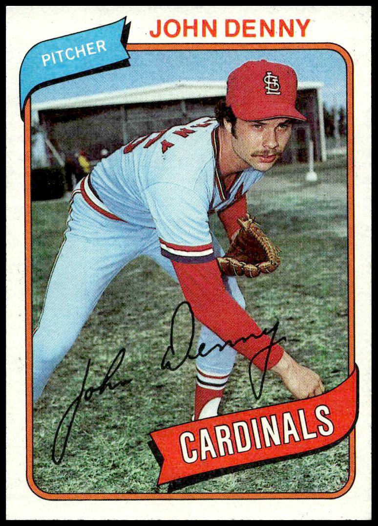 This Baseball card, from 1980 is part of the Topps  card set. John Denny is featured and has a card number of 464.