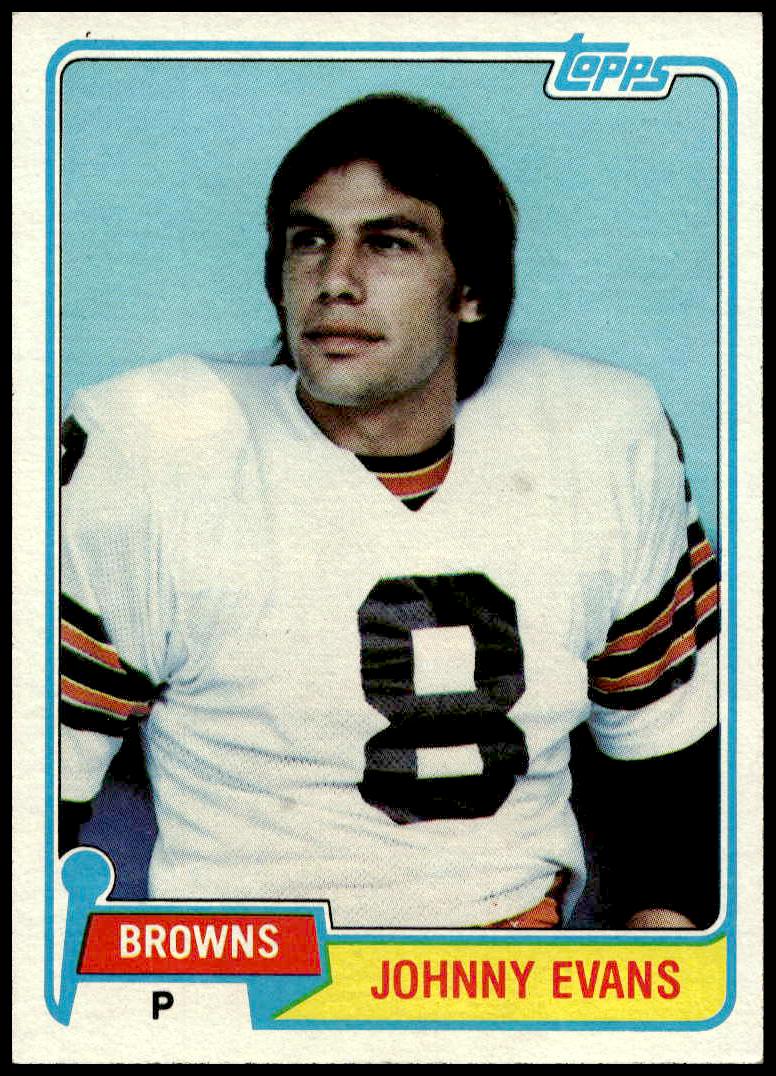 This Football card, from 1981 is part of the Topps  card set. Johnny Evans is featured and has a card number of 129.