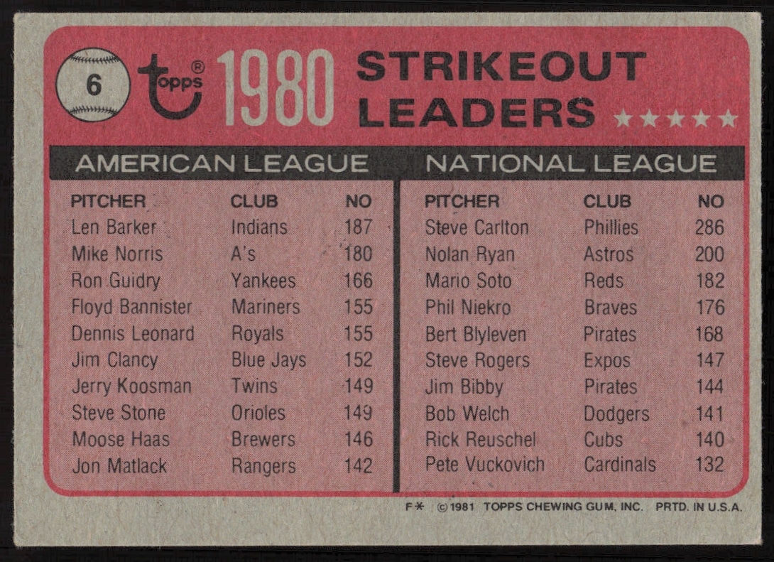 1981 Topps Len Barker / Steve Carlton League Leaders #6