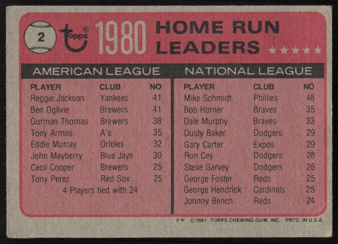 1981 Topps Rickey Henderson / Ben Oglivie / Mike Schmidt League Leaders #2