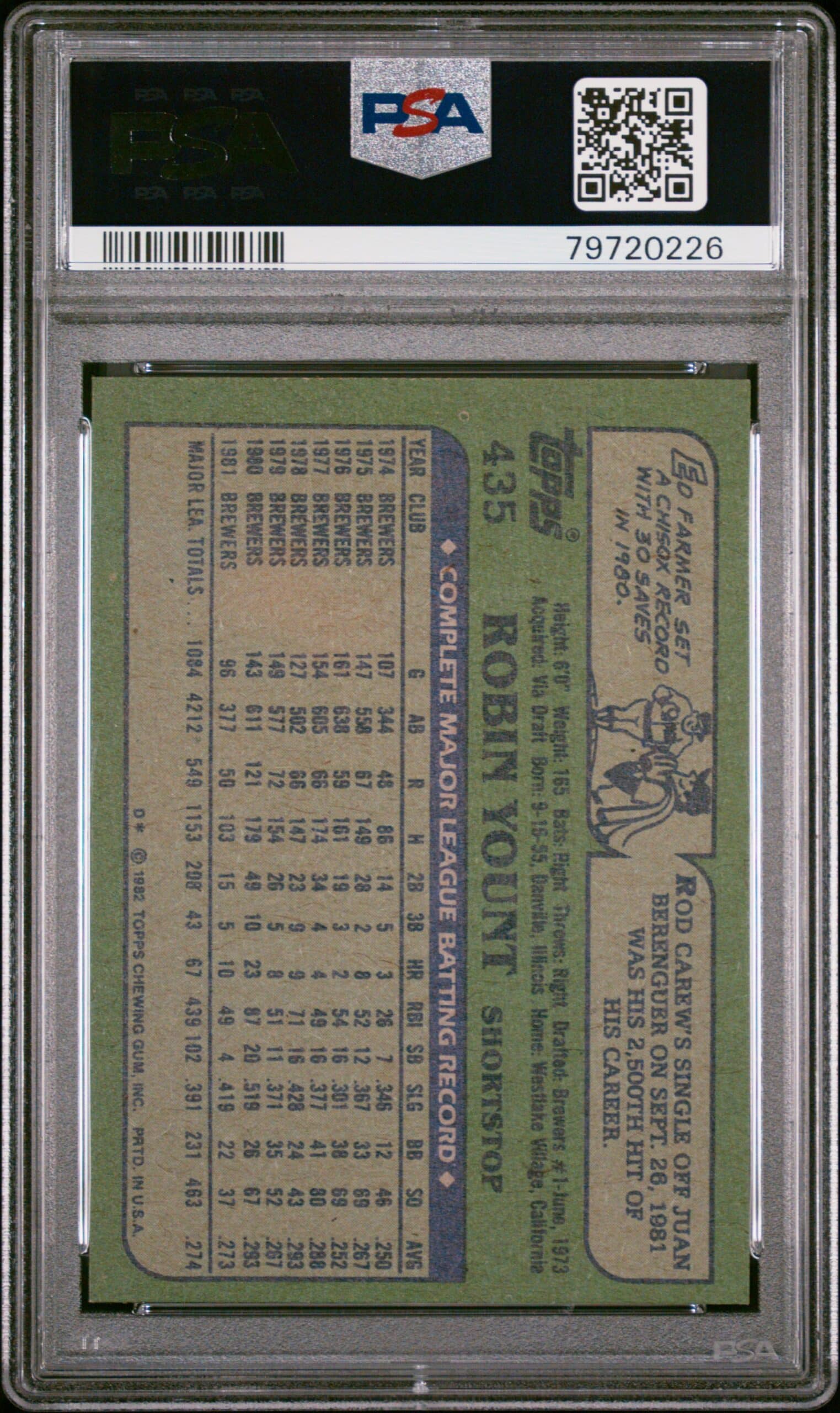 1982 Topps Robin Yount #435 in PSA 7 condition, a must-have for collectors and fans of baseball memorabilia. Enhance your collection today!