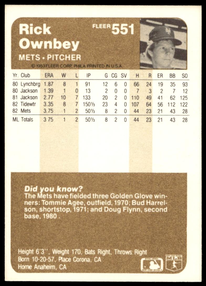 This Baseball card, from 1983 is part of the Fleer  card set. Rick Ownbey is featured and has a card number of 551.