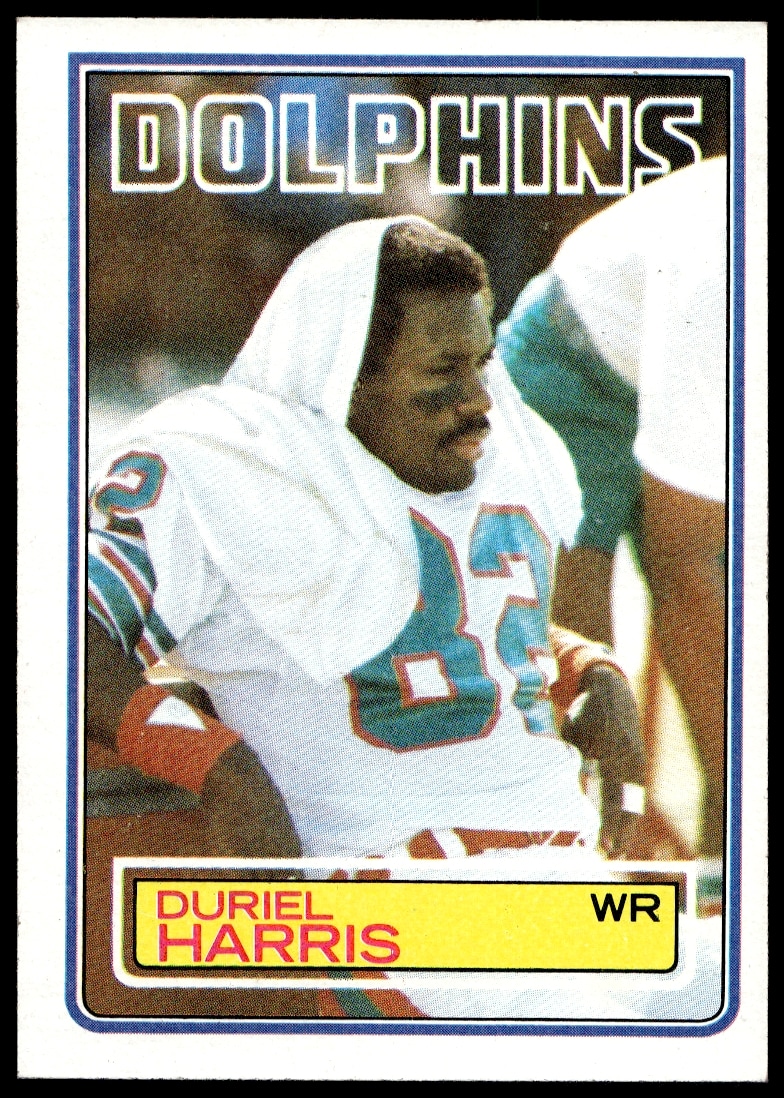 This Football card, from 1983 is part of the Topps card set. Duriel Harris is featured and has a card number of 314.
