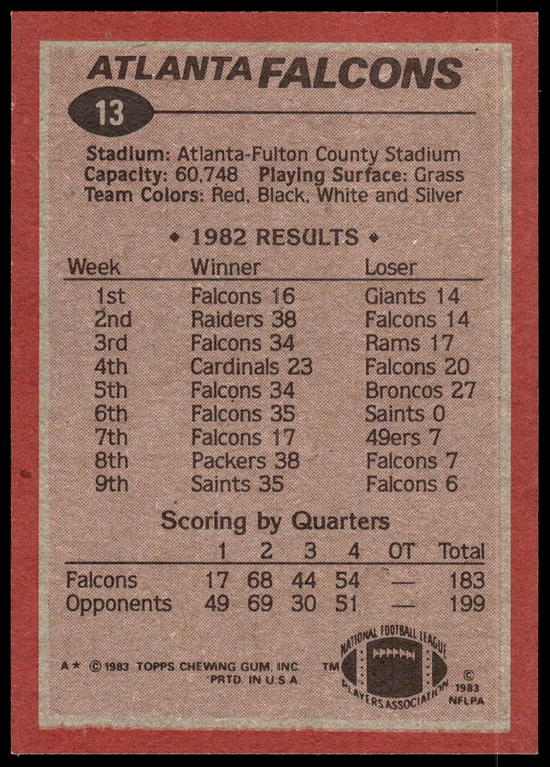 This Football card, from 1983 is part of the Topps card set. William Andrews is featured and has a card number of 13.