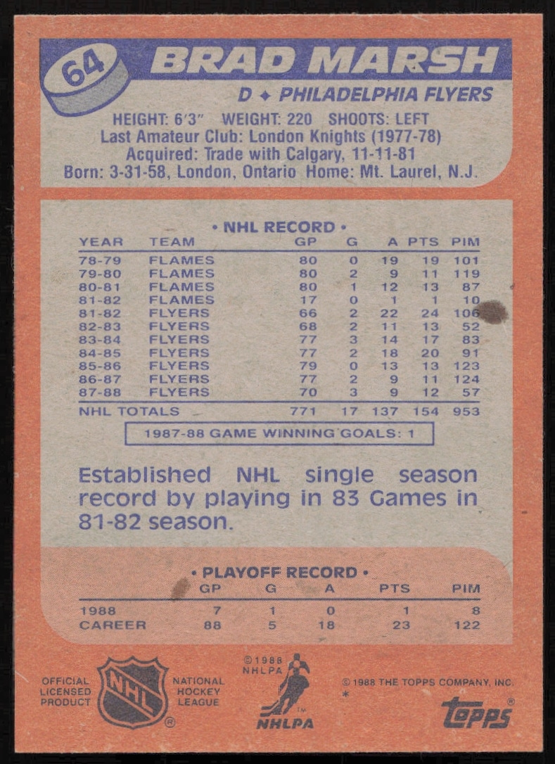 1988-89 Topps Brad Marsh #64