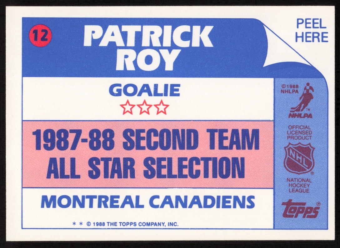 1988-89 Topps Patrick Roy Sticker Inserts #12