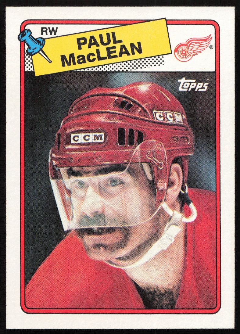 This Hockey card, from 1988-89 is part of the Topps card set. Paul MacLean is featured and has a card number of 38.