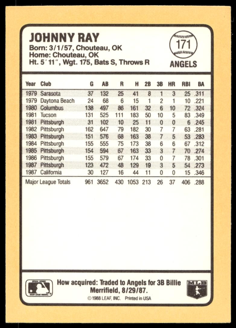 1988 Donruss Baseball’s Best Johnny Ray #171