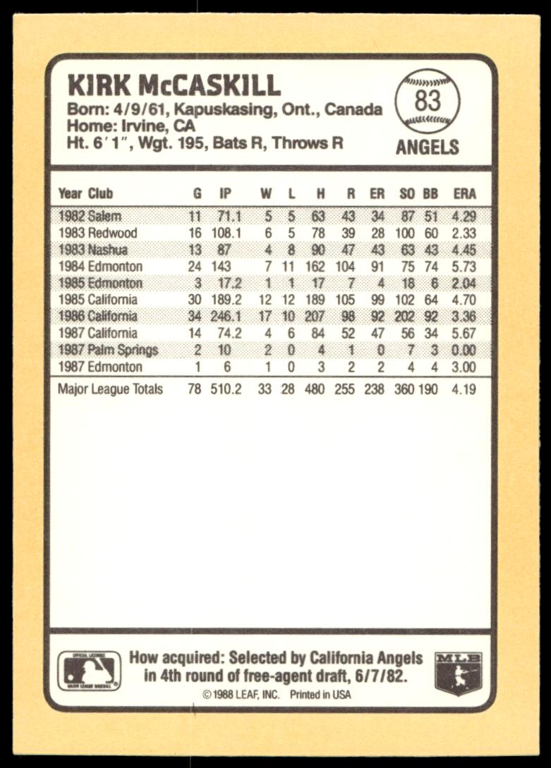 1988 Donruss Baseball’s Best Kirk McCaskill #83