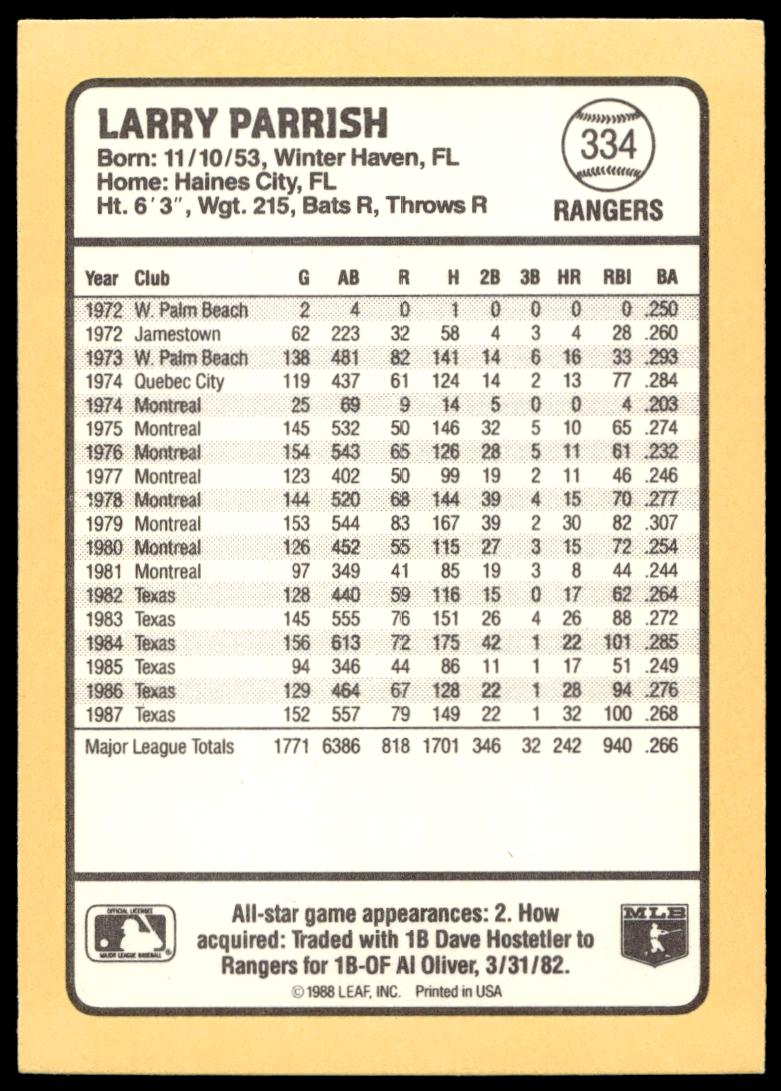 1988 Donruss Baseball’s Best Larry Parrish #334