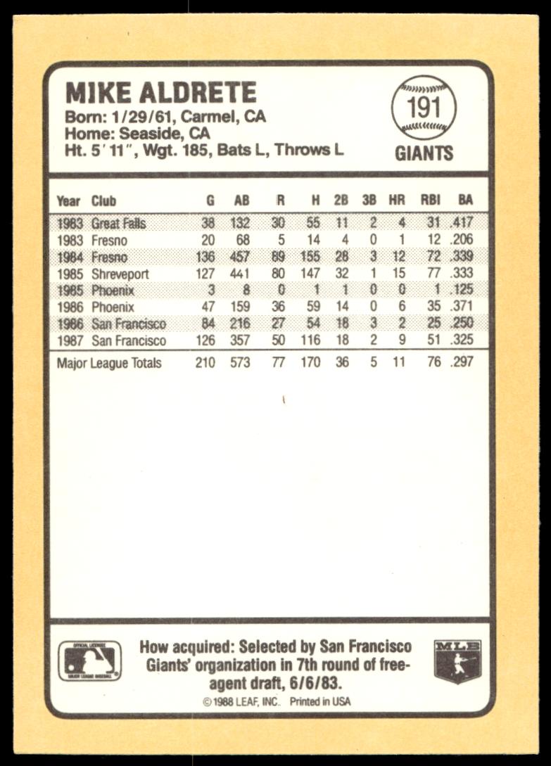 1988 Donruss Baseball’s Best Mike Aldrete #191