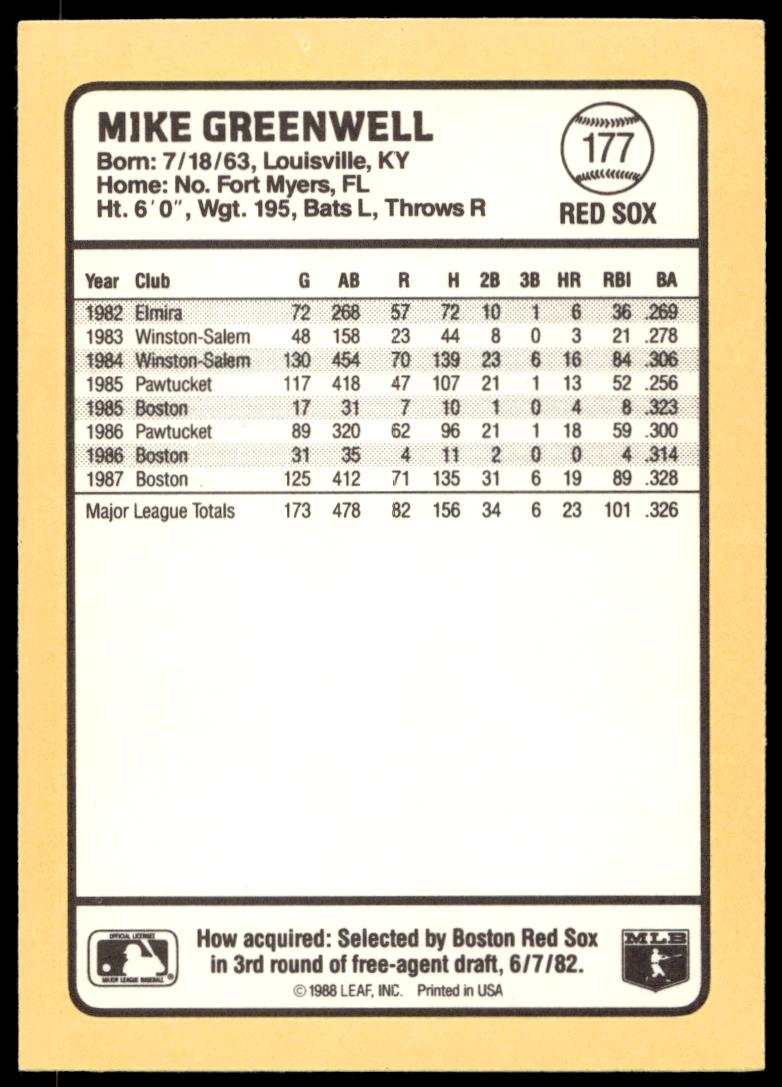 1988 Donruss Baseball’s Best Mike Greenwell #177