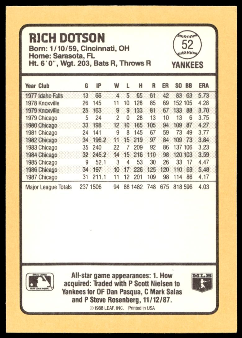 1988 Donruss Baseball’s Best Richard Dotson #52