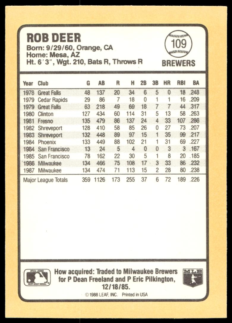 1988 Donruss Baseball’s Best Rob Deer #109