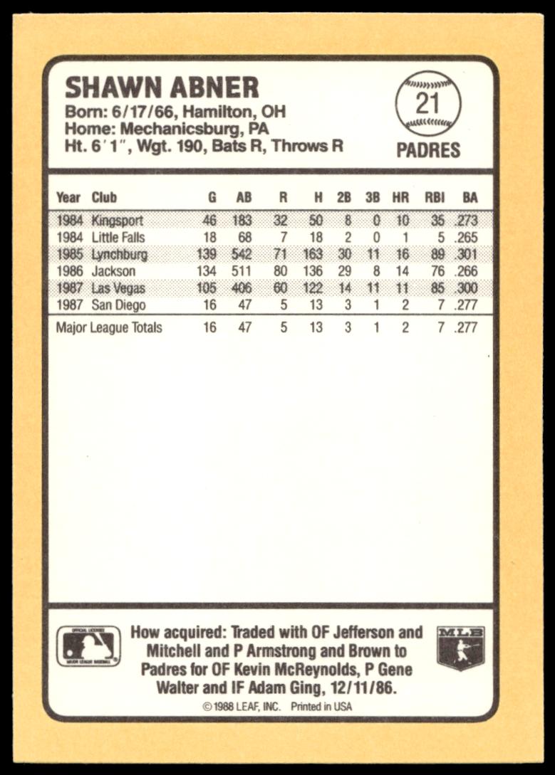 1988 Donruss Baseball’s Best Shawn Abner #21