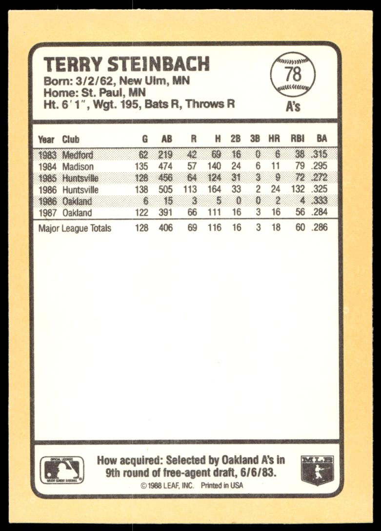 1988 Donruss Baseball’s Best Terry Steinbach #78