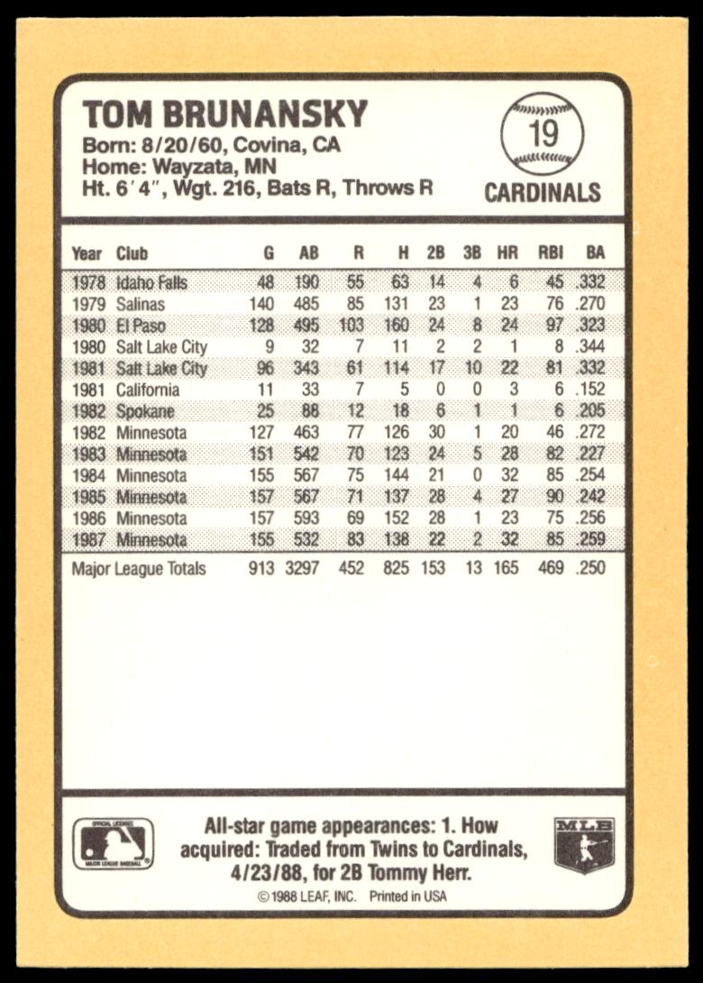 Home Β» 1988 Donruss Baseball’s Best Tom Brunansky #19
