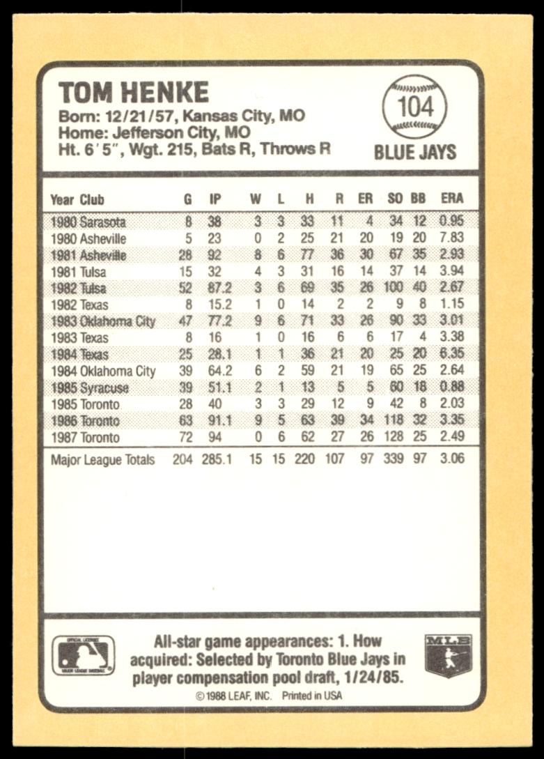 1988 Donruss Baseball’s Best Tom Henke #104