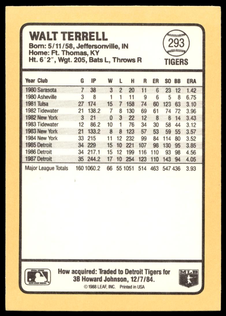 1988 Donruss Baseball’s Best Walt Terrell #293