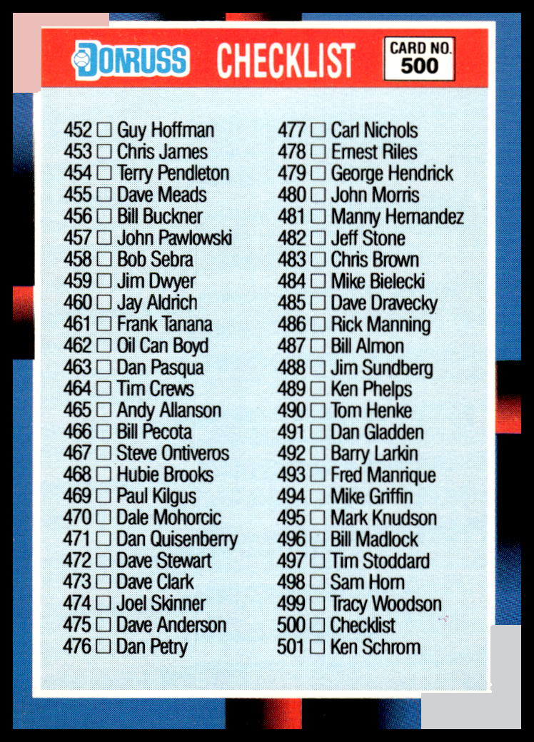 Home » 1988 Donruss Checklist 452-557 #500
