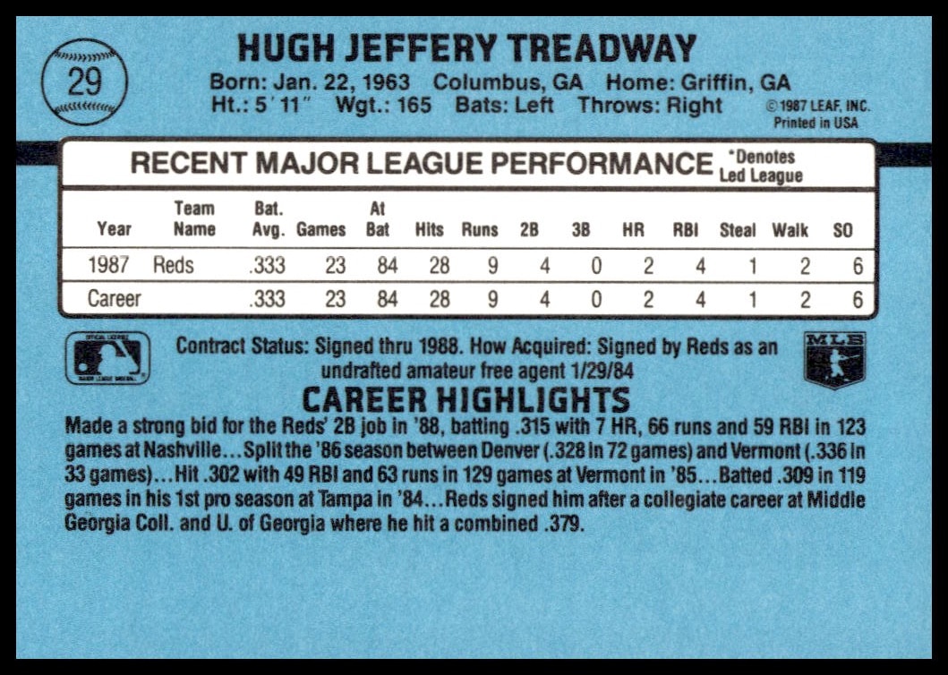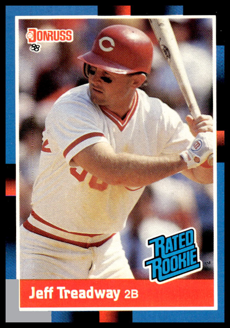 This Baseball card, from 1988 is part of the Donruss  card set. Jeff Treadway is featured and has a card number of 29.