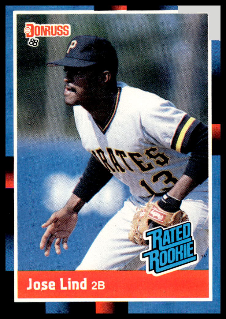 This Baseball card, from 1988 is part of the Donruss  card set. Jose Lind is featured and has a card number of 38.