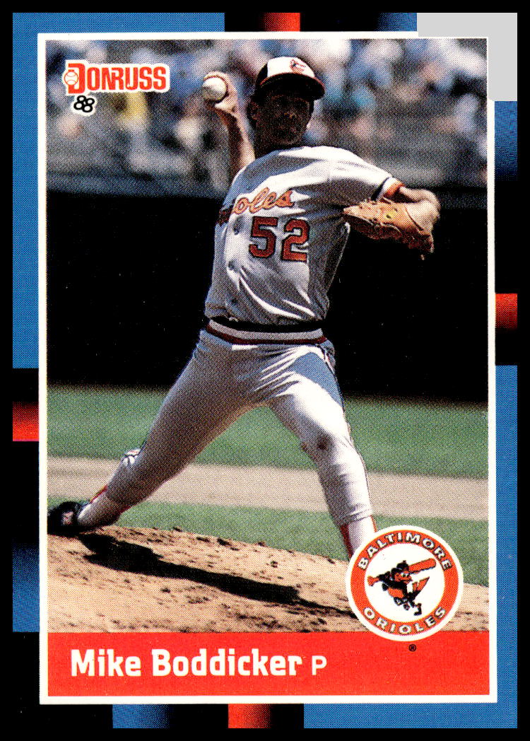 This Baseball card, from 1988 is part of the Donruss  card set. Mike Boddicker is featured and has a card number of 89.