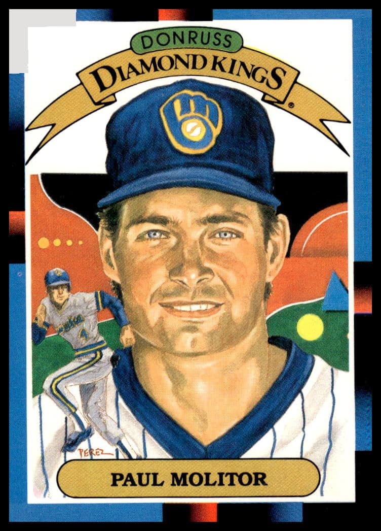 This Baseball card, from 1988 is part of the Donruss  card set. Paul Molitor is featured and has a card number of 7.