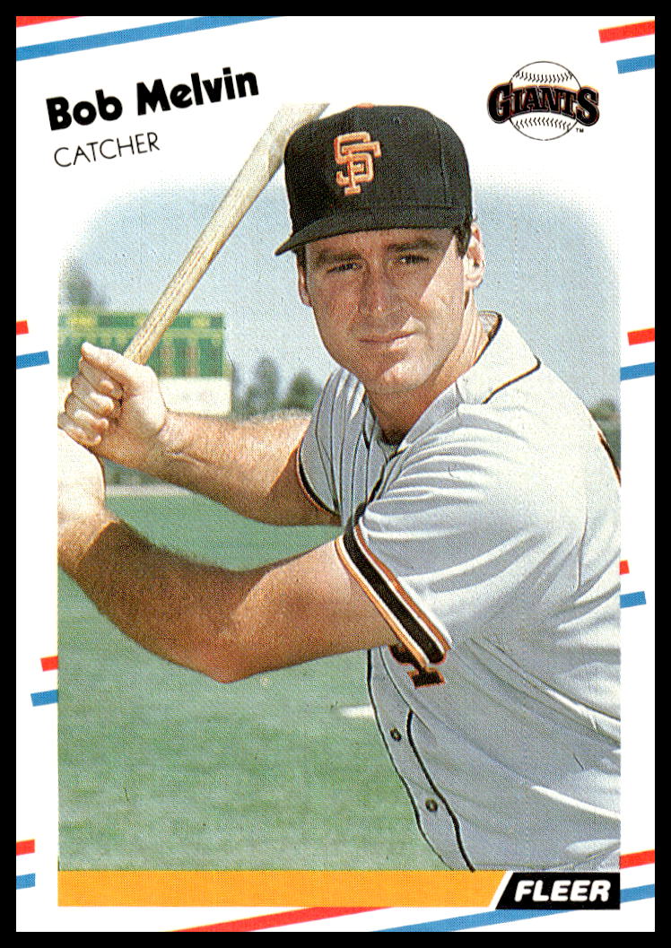This Baseball card, from 1988 is part of the Fleer  card set. Bob Melvin is featured and has a card number of 91.