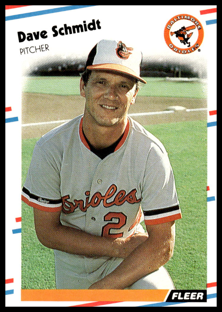 This Baseball card, from 1988 is part of the Fleer  card set. Dave Schmidt is featured and has a card number of 571.