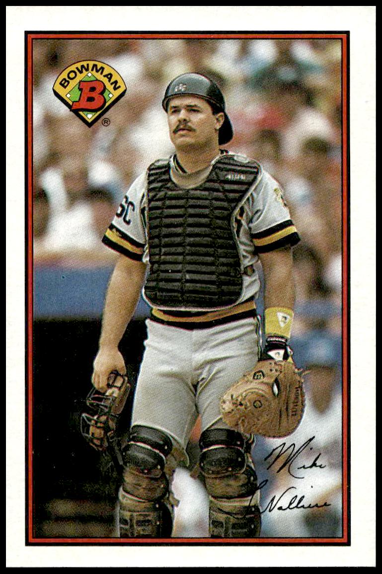 This Baseball card, from 1989 is part of the Bowman  card set. Mike LaValliere is featured and has a card number of 417.