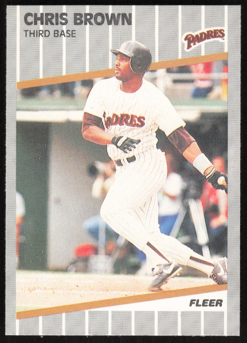 This Baseball card, from 1989 is part of the Fleer card set. Chris Brown is featured and has a card number of 301.
