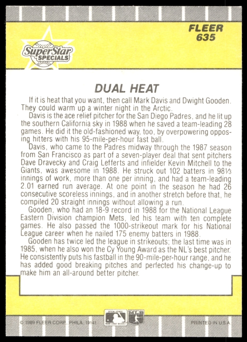 1989 Fleer Mark Davis / Dwight Gooden SSS #635