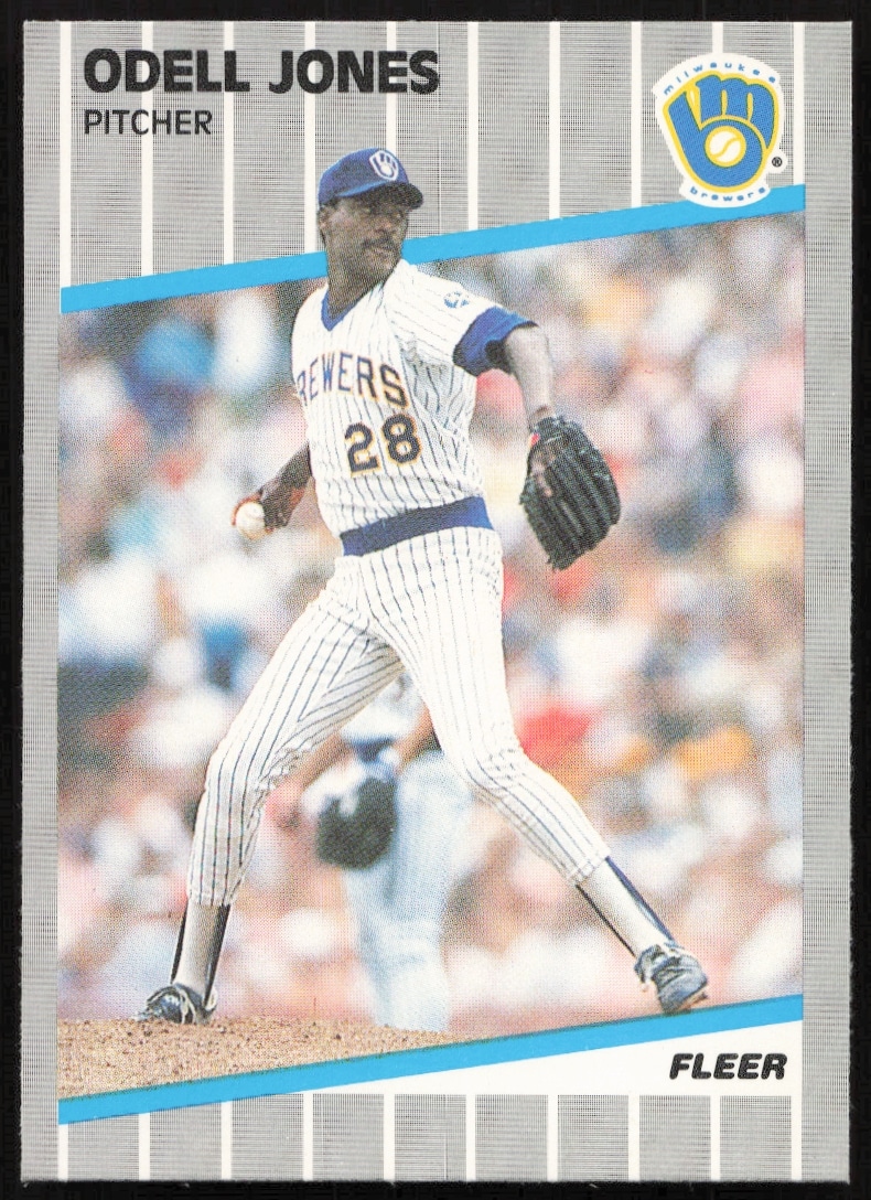 This Baseball card, from 1989 is part of the Fleer card set. Odell Jones is featured and has a card number of 189.