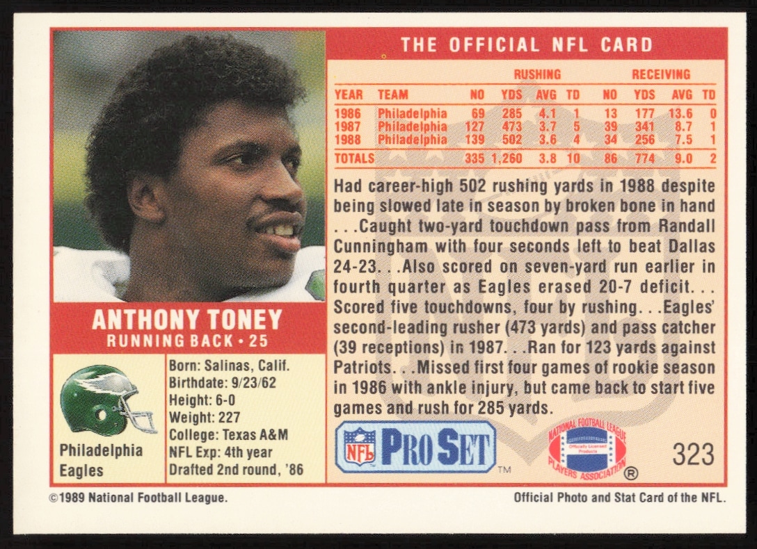 This Football card, from 1989 is part of the Pro Set card set. Buster Posey is featured and has a card number of 133.