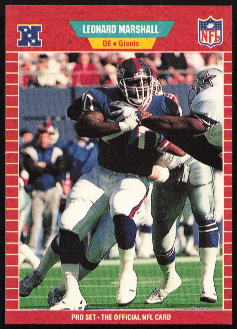 This Football card, from 1989 is part of the Pro Set card set. Leonard Marshall is featured and has a card number of 288.