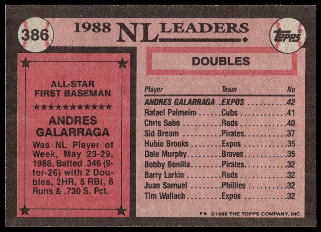 This Baseball card, from 1989 is part of the Topps  card set. Andy Van Slyke is featured and has a card number of 392.