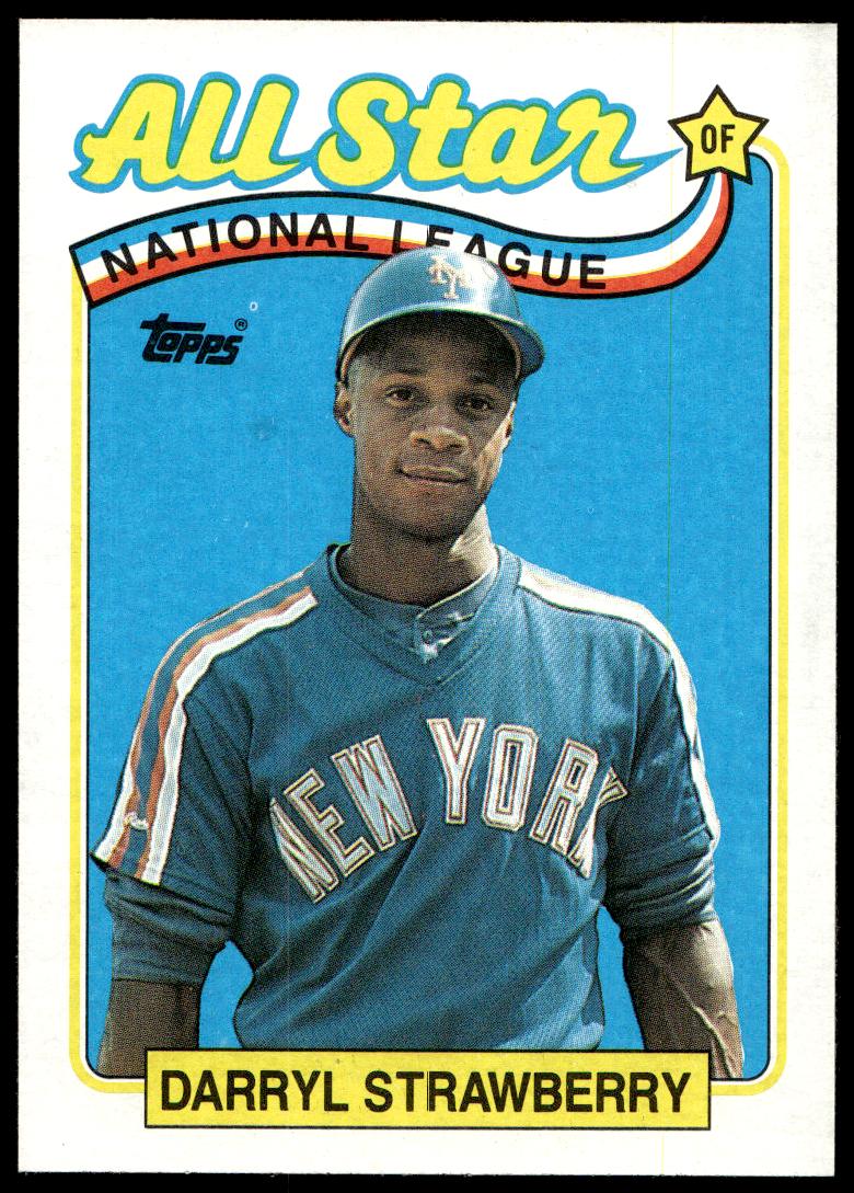 This Baseball card, from 1989 is part of the Topps  card set. Darryl Strawberry is featured and has a card number of 390.