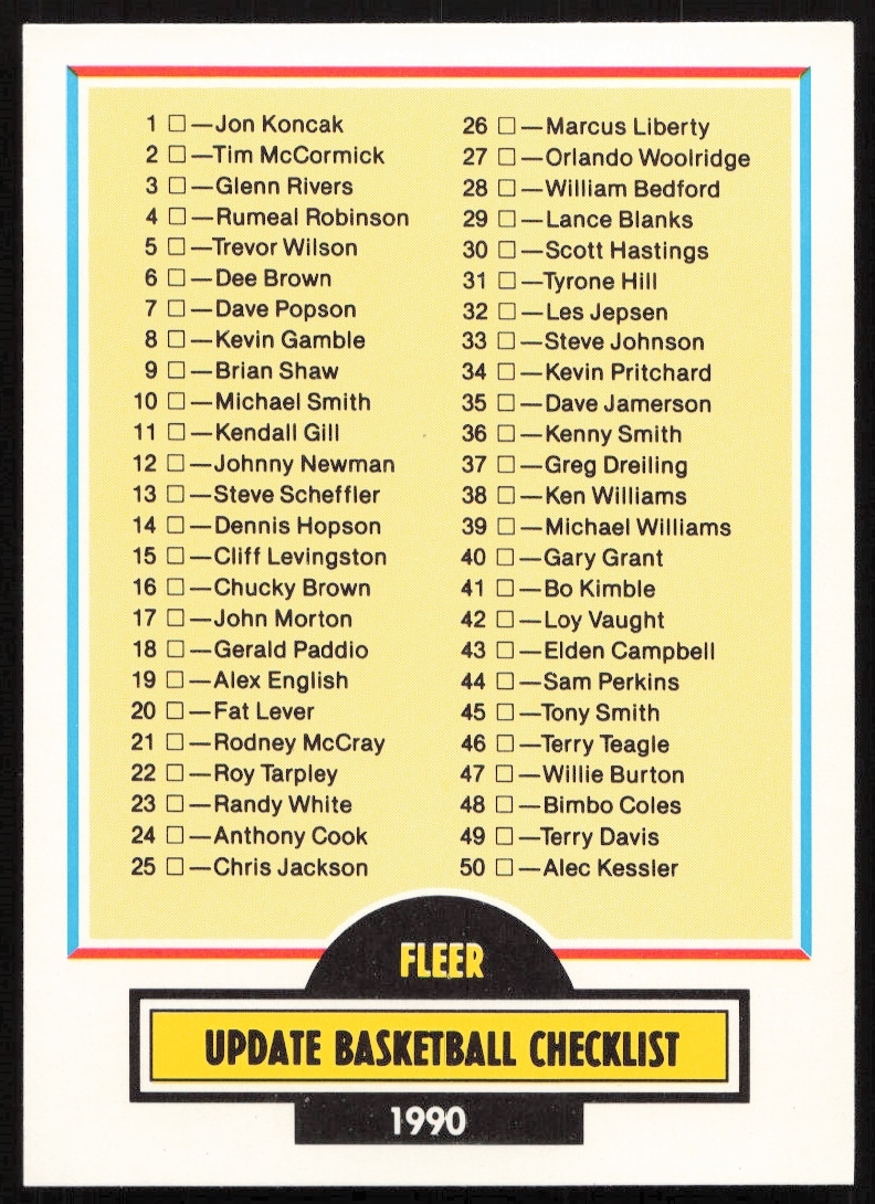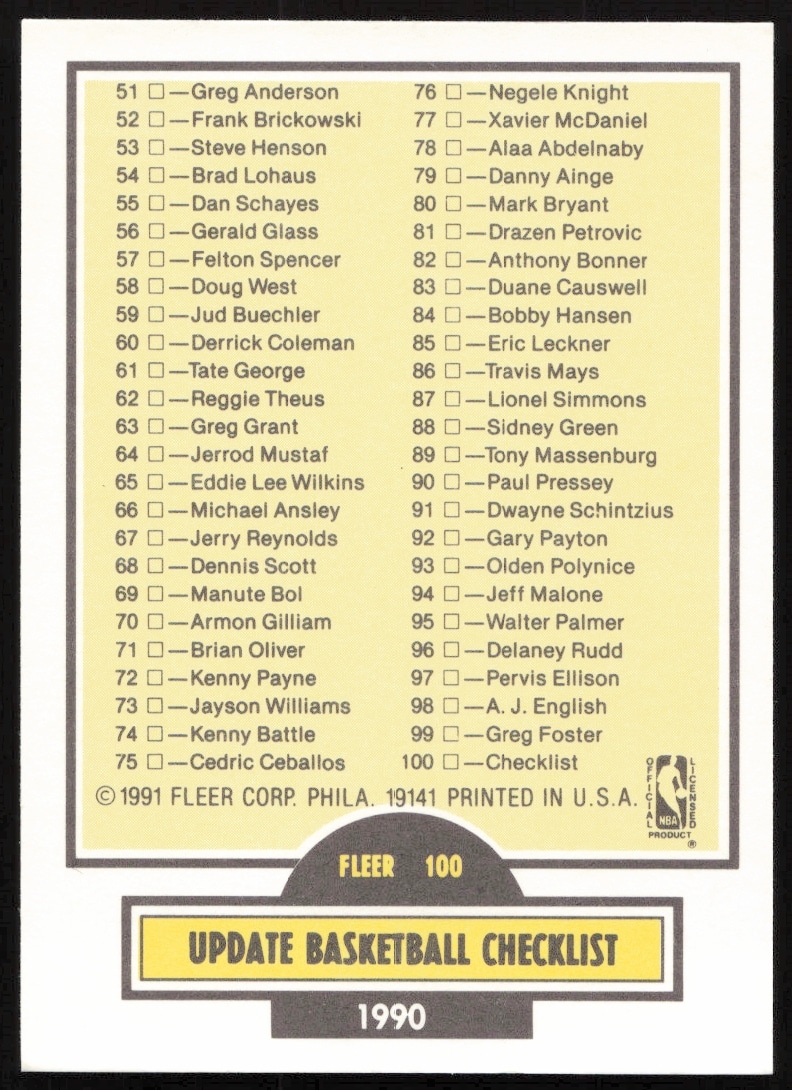 1990-91 Fleer Update Checklist #U-100