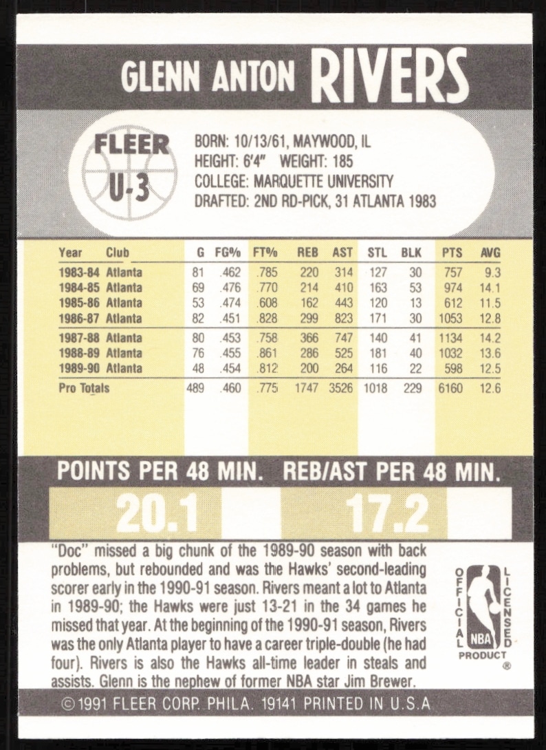 1990-91 Fleer Update Glenn Rivers #U-3