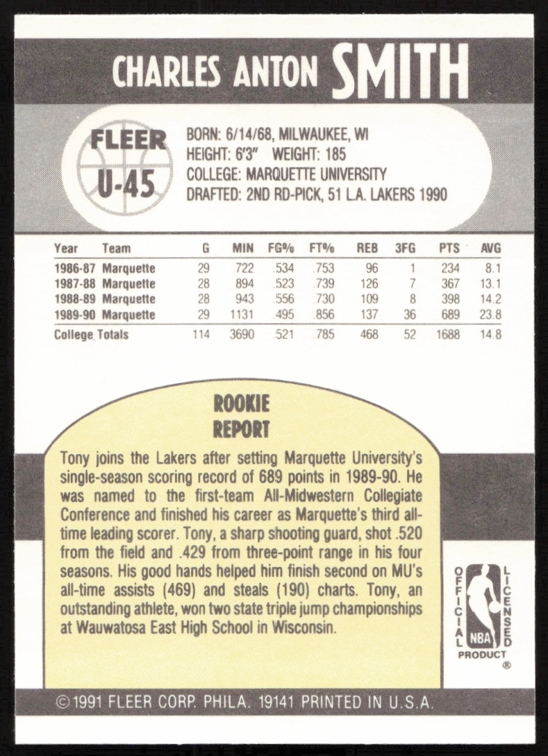 Home Β» 1990-91 Fleer Update Tony Smith #U-45