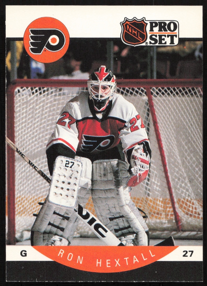 This Hockey card, from 1990-91 is part of the Pro Set NHL card set. Ron Hextall is featured and has a card number of 216.