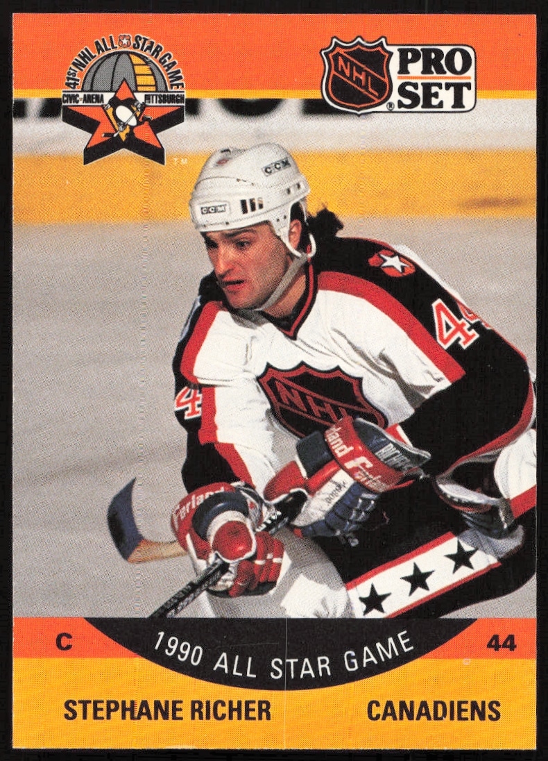 This Hockey card, from 1990-91 is part of the Pro Set NHL card set. Stephane Richer is featured and has a card number of 370.
