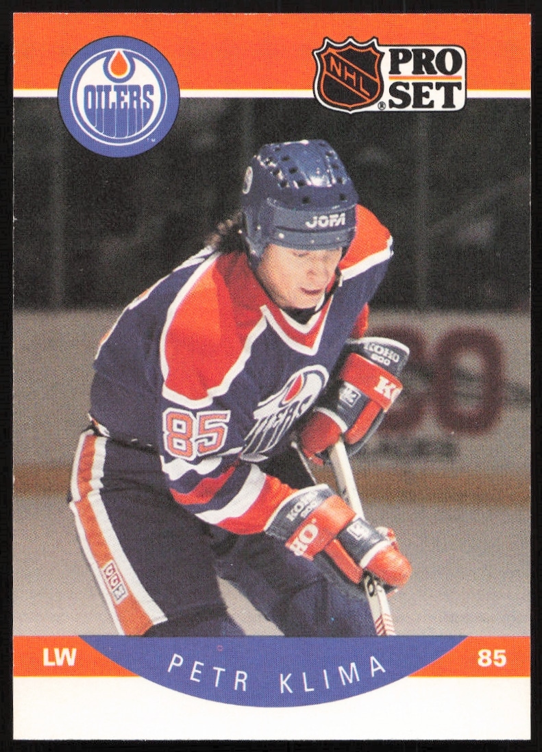 This Hockey card, from 1990-91 is part of the Pro Set card set. Petr Klima is featured and has a card number of 86.