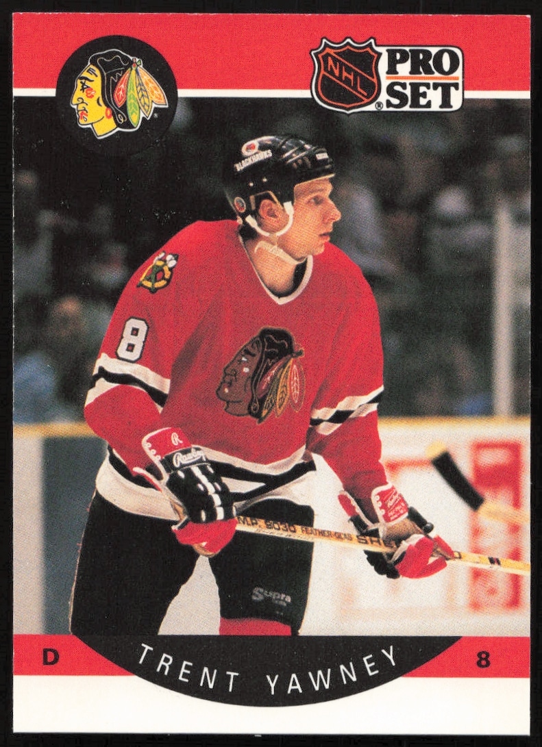 This Hockey card, from 1990-91 is part of the Pro Set card set. Trent Yawney is featured and has a card number of 64.