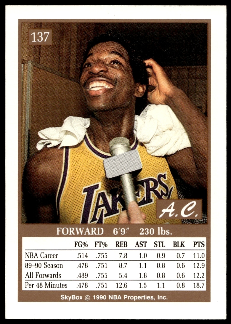 This Basketball card, from 1990-91 is part of the SkyBox card set. A.C. Green is featured and has a card number of 137.