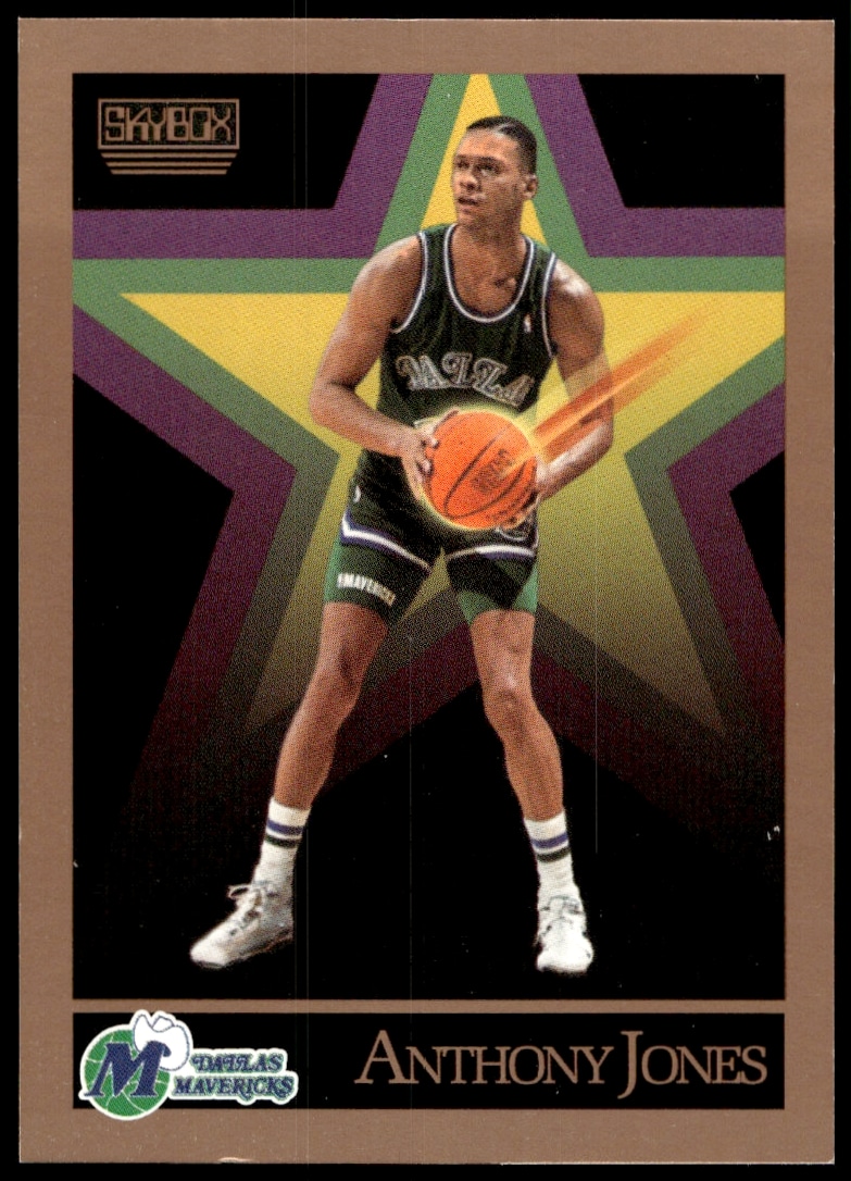 This Basketball card, from 1990-91 is part of the SkyBox card set. Anthony Jones is featured and has a card number of 65.