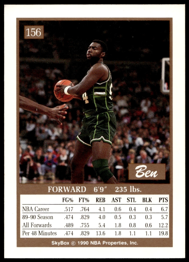 This Basketball card, from 1990-91 is part of the SkyBox card set. Ben Coleman is featured and has a card number of 156.