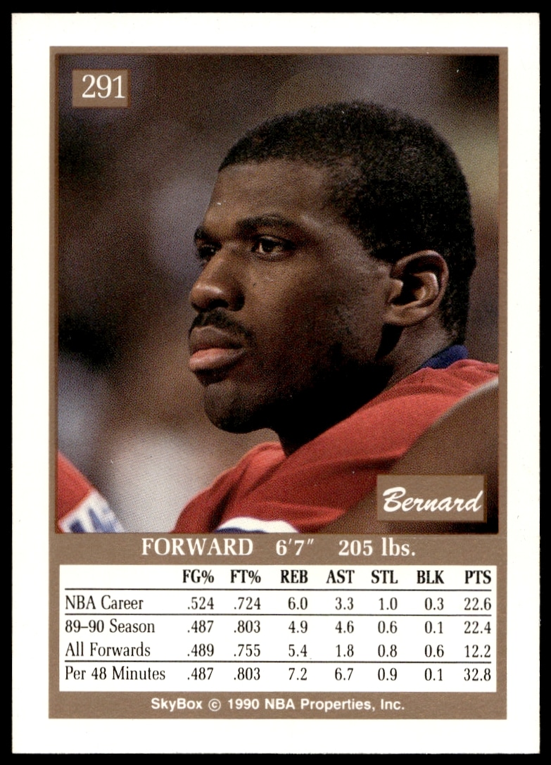 This Basketball card, from 1990-91 is part of the SkyBox card set. Bernard King is featured and has a card number of 291.
