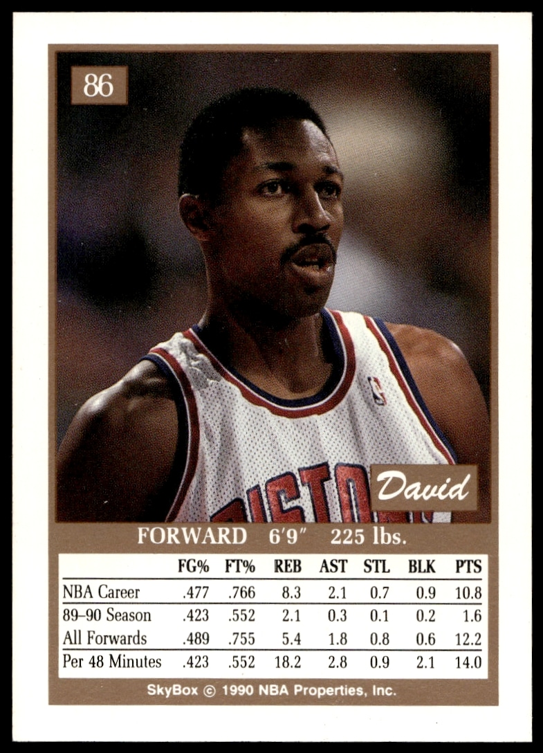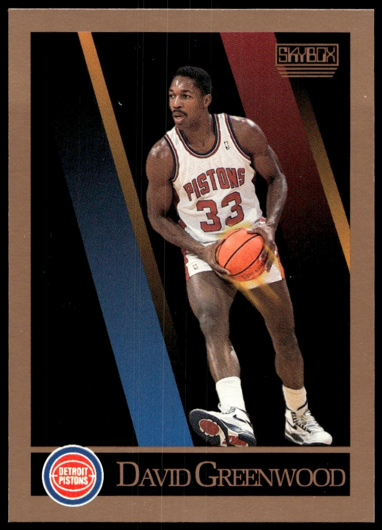 This Basketball card, from 1990-91 is part of the SkyBox card set. David Greenwood is featured and has a card number of 86.